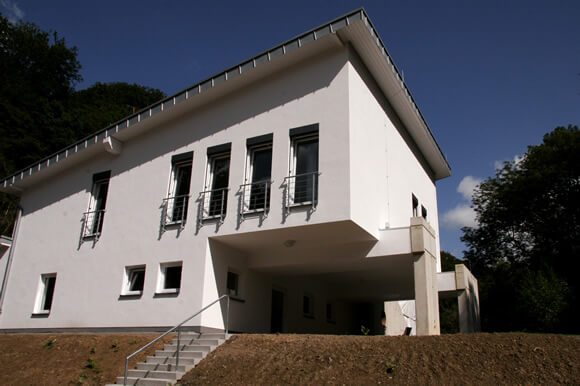 Bau des Schulungszentrums simas (Schulungsinstitut in der Membrantechnik für die Abwasserreinigung in Seelscheid) auf der Kläranlage Seelscheid.